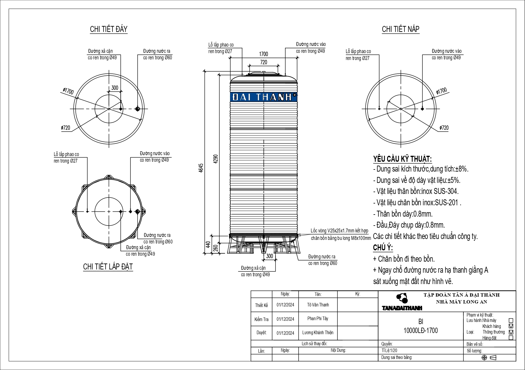 Bồn nước Inox công nghiệp Đại Thành thuộc thương hiệu Tân Á Đại Thành – dẫn đầu thị trường bồn chứa Việt Nam, được đa số các doanh nghiệp & công trình, dự án,… ưa chuộng tin dùng. Đáp ứng tiêu chuẩn quốc tế ISO 9001:2015 và tuân thủ quy chuẩn Việt Nam QCVN 12-3:2011/BYT, sản phẩm nổi bật nhờ: