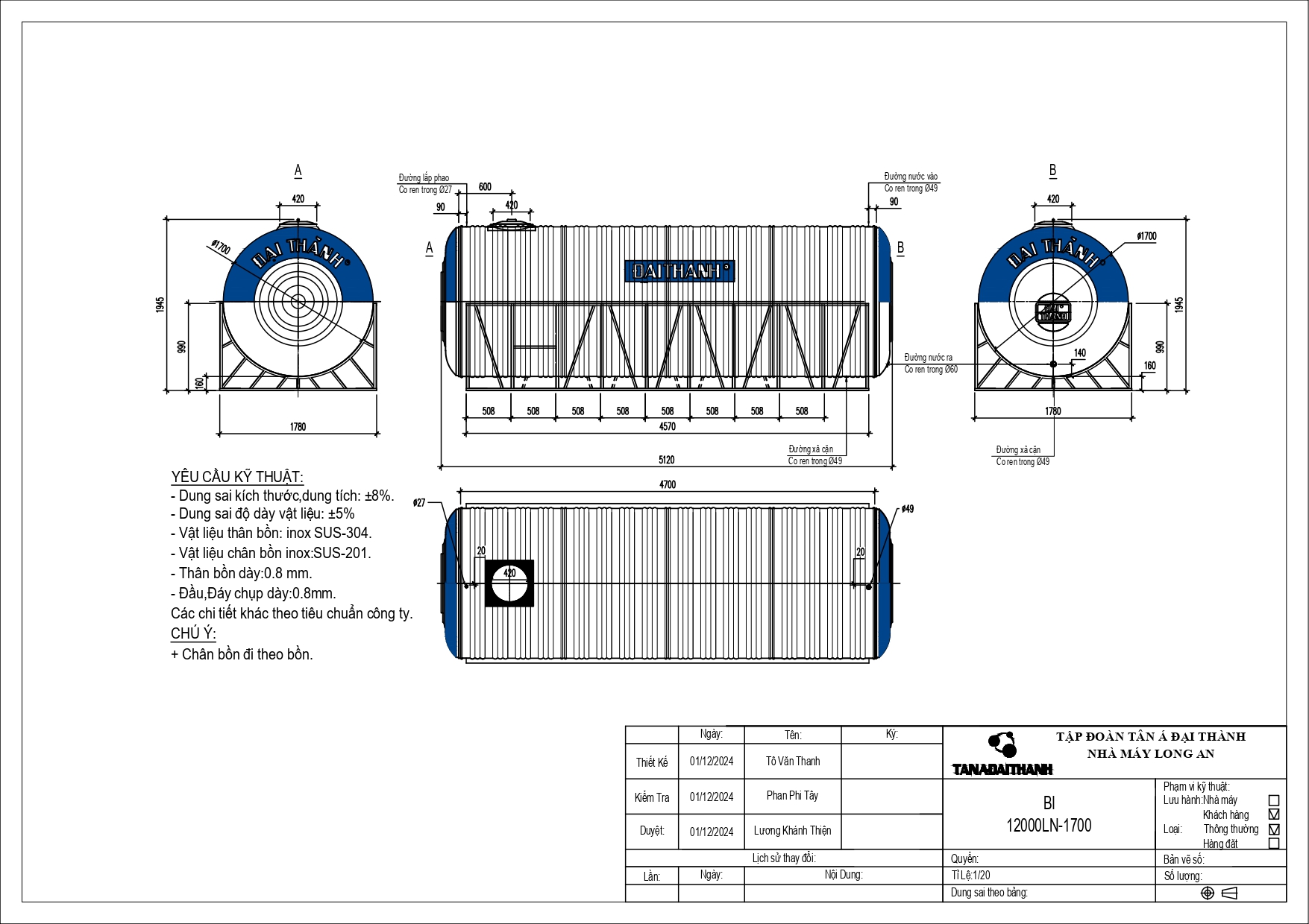 Bồn nước Inox công nghiệp Đại Thành thuộc thương hiệu Tân Á Đại Thành – dẫn đầu thị trường bồn chứa Việt Nam, được đa số các doanh nghiệp & công trình, dự án,… ưa chuộng tin dùng. Đáp ứng tiêu chuẩn quốc tế ISO 9001:2015 và tuân thủ quy chuẩn Việt Nam QCVN 12-3:2011/BYT, sản phẩm nổi bật nhờ: