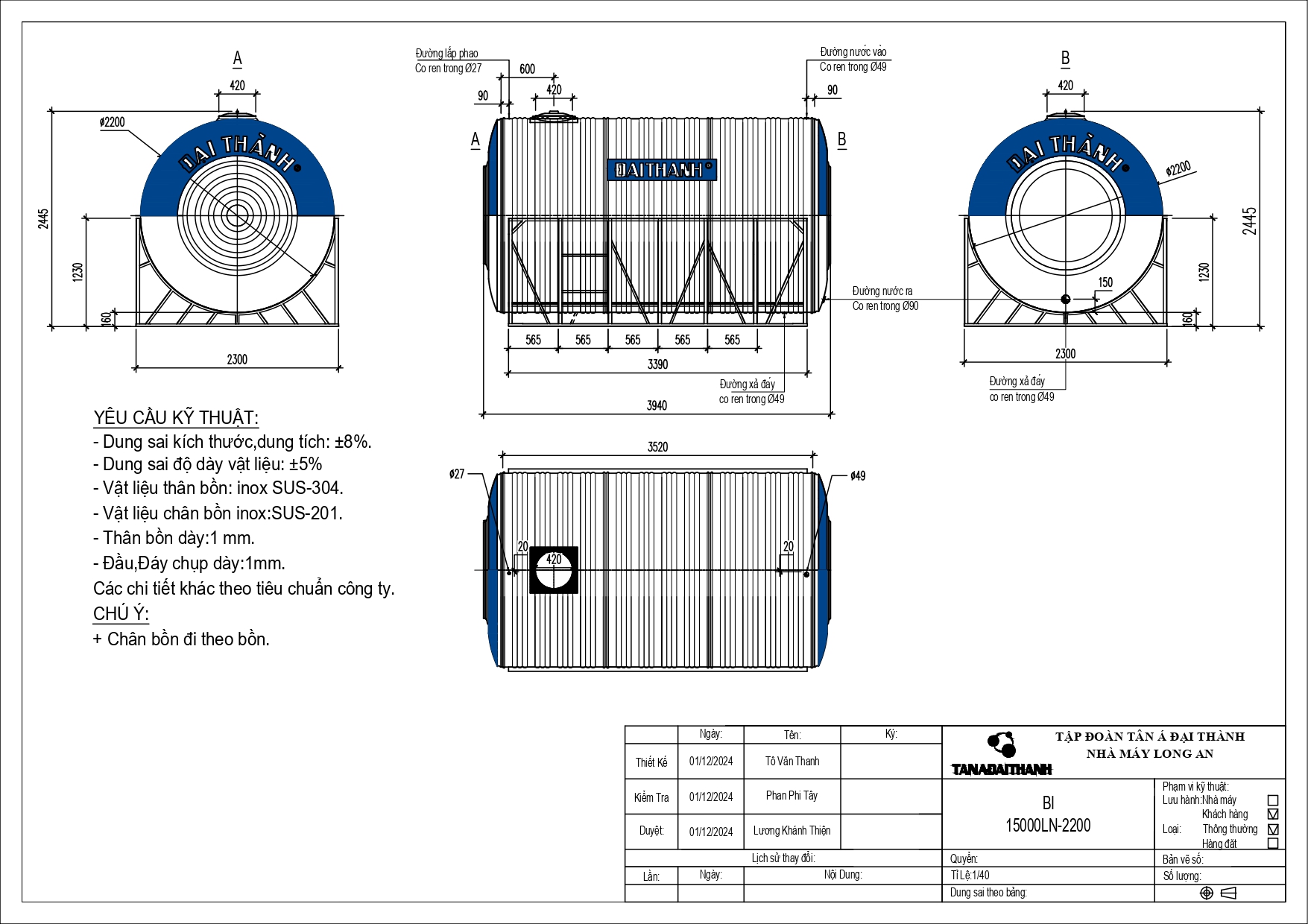 Bồn nước Inox công nghiệp Đại Thành thuộc thương hiệu Tân Á Đại Thành – dẫn đầu thị trường bồn chứa Việt Nam, được đa số các doanh nghiệp & công trình, dự án,… ưa chuộng tin dùng. Đáp ứng tiêu chuẩn quốc tế ISO 9001:2015 và tuân thủ quy chuẩn Việt Nam QCVN 12-3:2011/BYT, sản phẩm nổi bật nhờ: