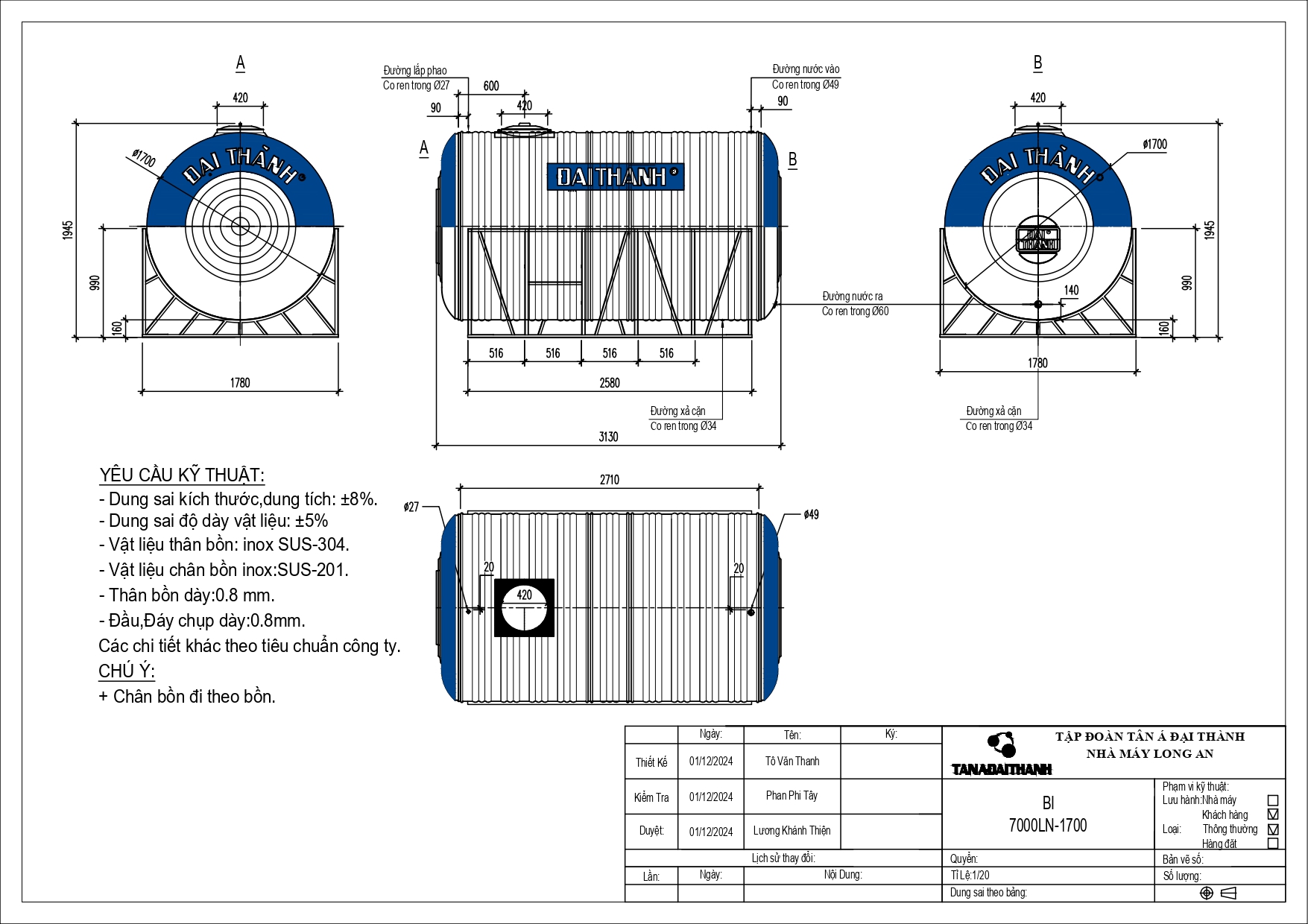 Bồn nước Inox công nghiệp Đại Thành thuộc thương hiệu Tân Á Đại Thành – dẫn đầu thị trường bồn chứa Việt Nam, được đa số các doanh nghiệp & công trình, dự án,… ưa chuộng tin dùng. Đáp ứng tiêu chuẩn quốc tế ISO 9001:2015 và tuân thủ quy chuẩn Việt Nam QCVN 12-3:2011/BYT, sản phẩm nổi bật nhờ: