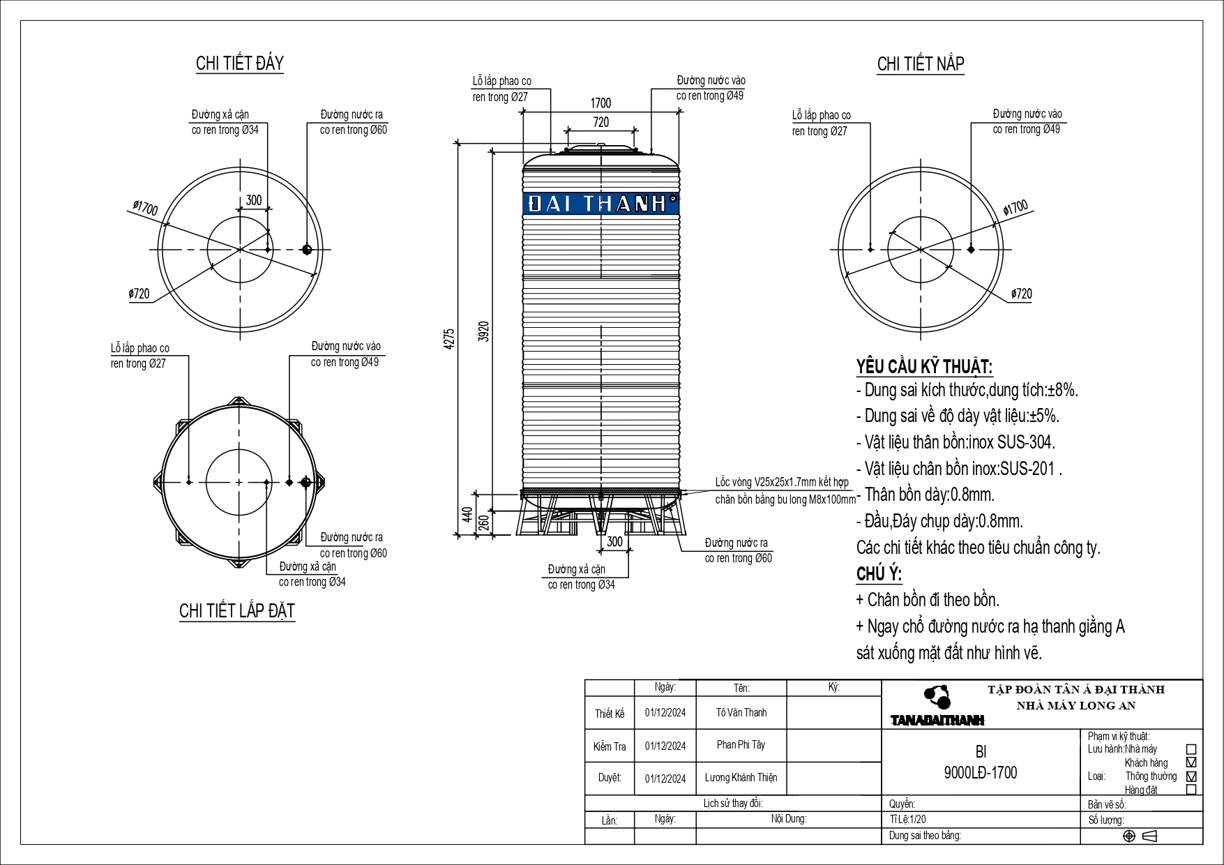 Bồn nước Inox công nghiệp Đại Thành thuộc thương hiệu Tân Á Đại Thành – dẫn đầu thị trường bồn chứa Việt Nam, được đa số các doanh nghiệp & công trình, dự án,… ưa chuộng tin dùng. Đáp ứng tiêu chuẩn quốc tế ISO 9001:2015 và tuân thủ quy chuẩn Việt Nam QCVN 12-3:2011/BYT, sản phẩm nổi bật nhờ:
