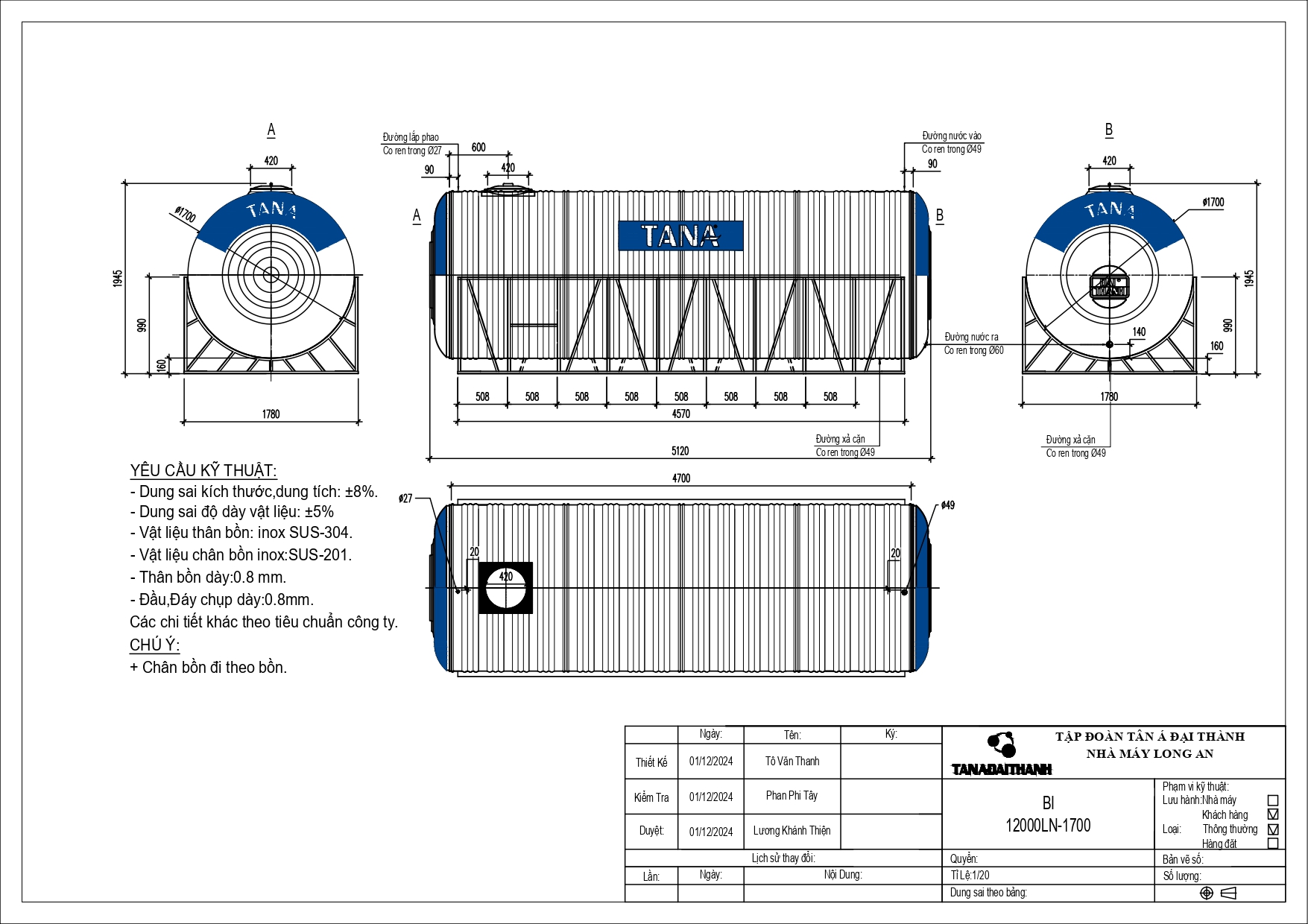 Bồn nước Inox công nghiệp Tân Á thuộc thương hiệu Tân Á Đại Thành – dẫn đầu thị trường bồn chứa Việt Nam, được đa số các doanh nghiệp & công trình, dự án,… ưa chuộng tin dùng. Đáp ứng tiêu chuẩn quốc tế ISO 9001:2015 và tuân thủ quy chuẩn Việt Nam QCVN 12-3:2011/BYT, sản phẩm nổi bật nhờ: