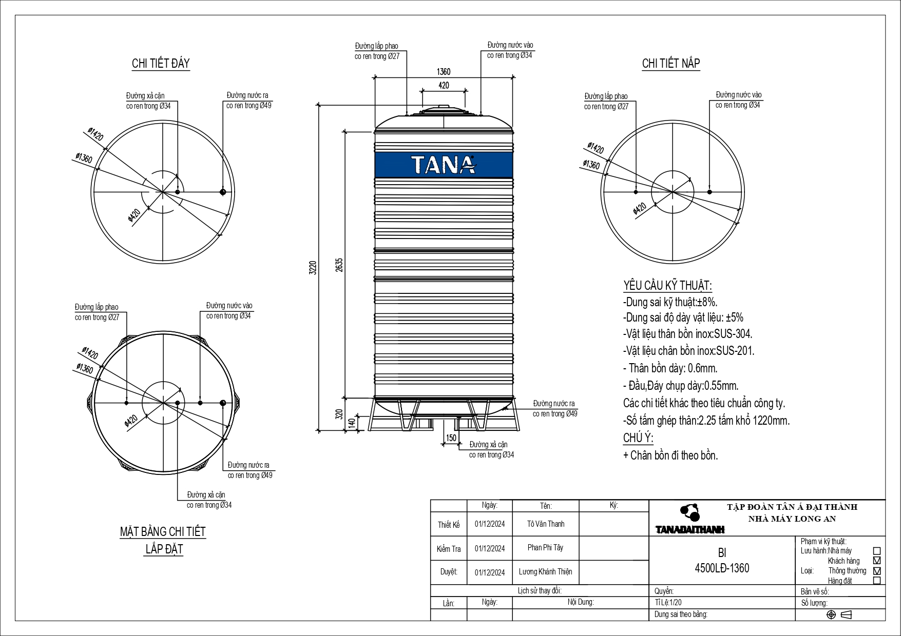 BỒN INOX TÂN Á 4.500L ĐỨNG