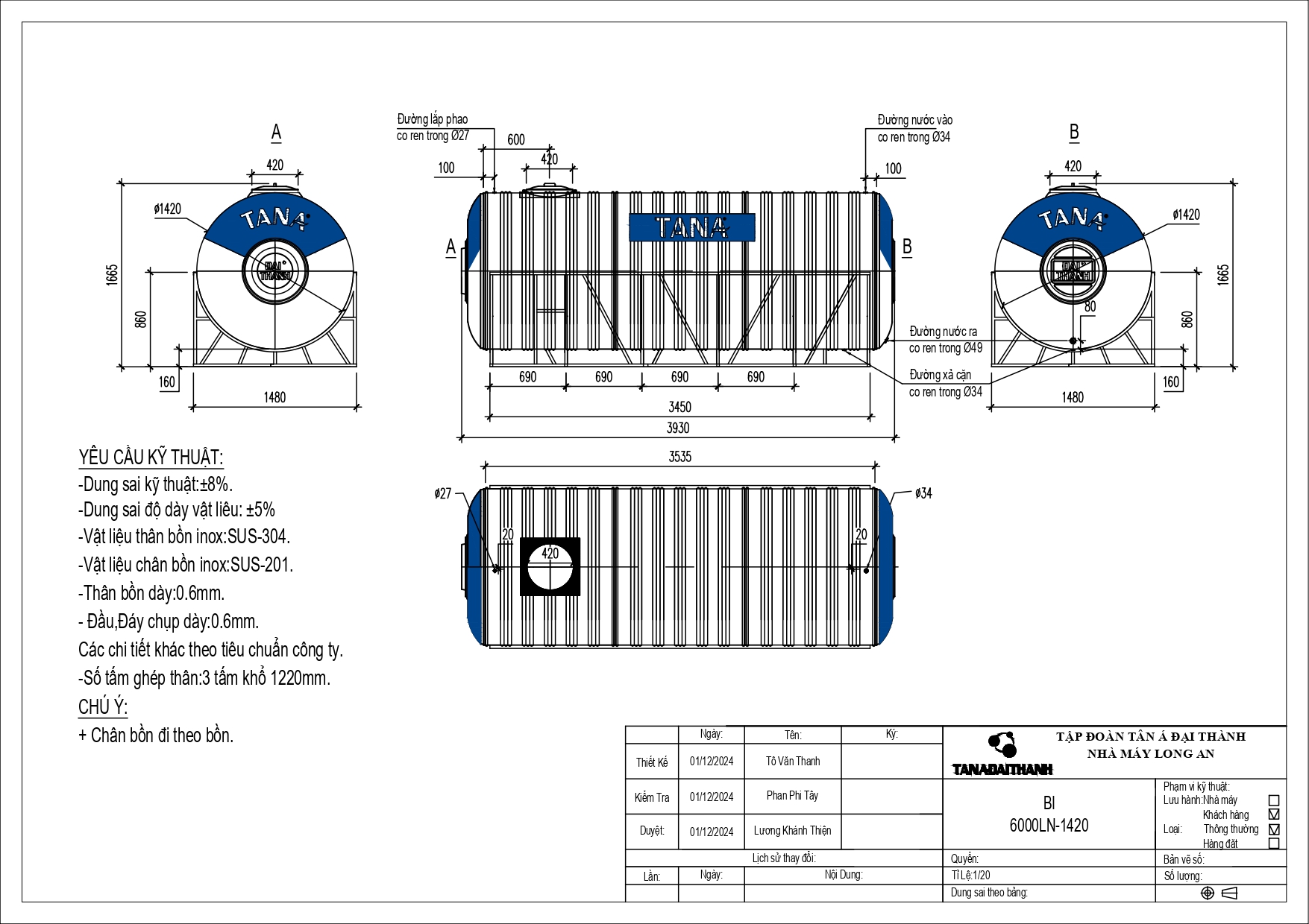 BỒN INOX TÂN Á 6.000L NGANG