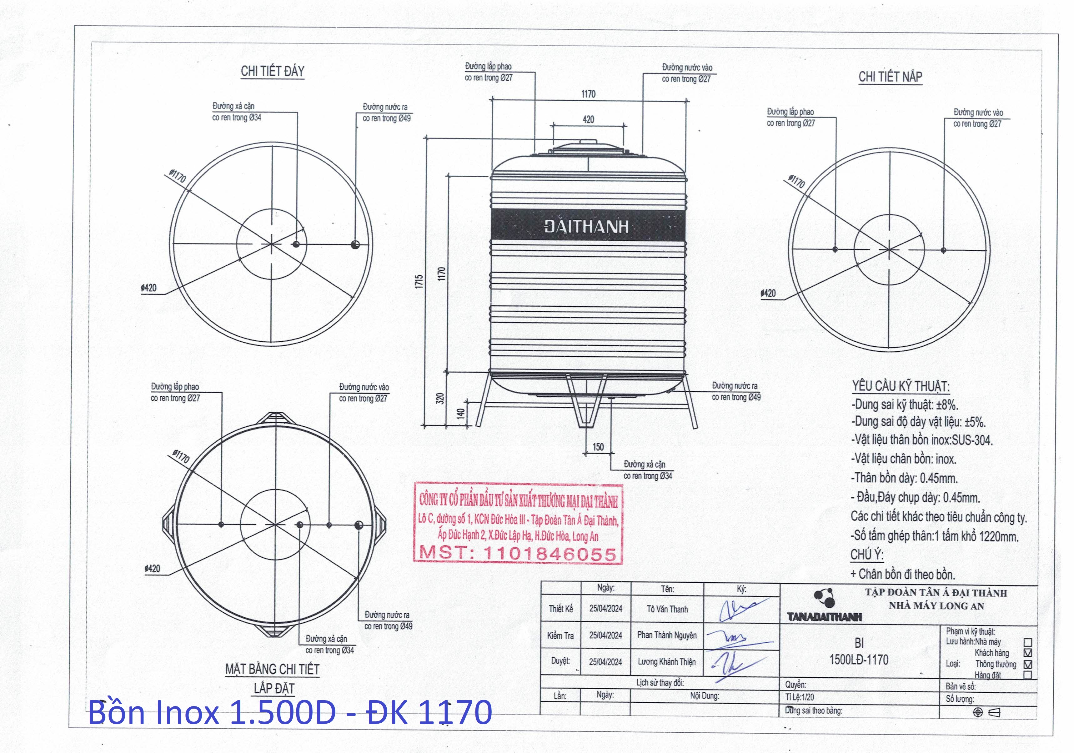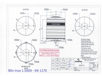 BỒN INOX ĐẠI THÀNH 1.500L ĐỨNG
