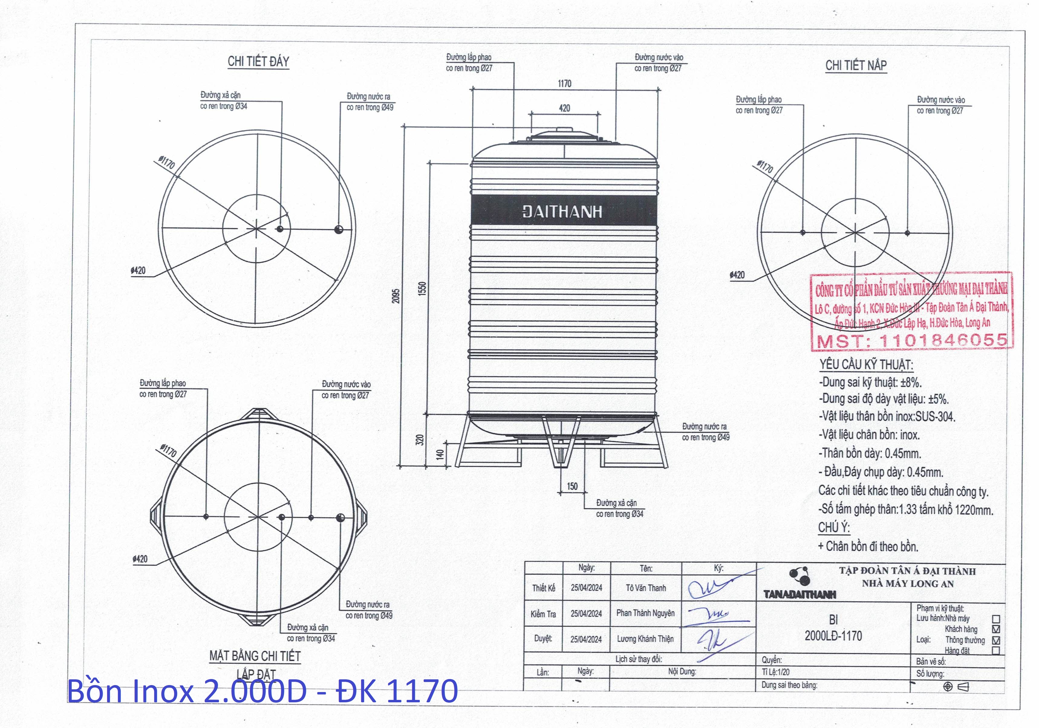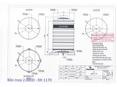 BỒN INOX ĐẠI THÀNH 2.000L ĐỨNG