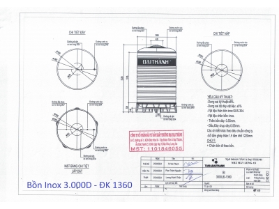- Bồn nước Inox Đại Thành. Chất liệu: Thép không gỉ SUS 304. Bảo hành chính hãng: 12 năm