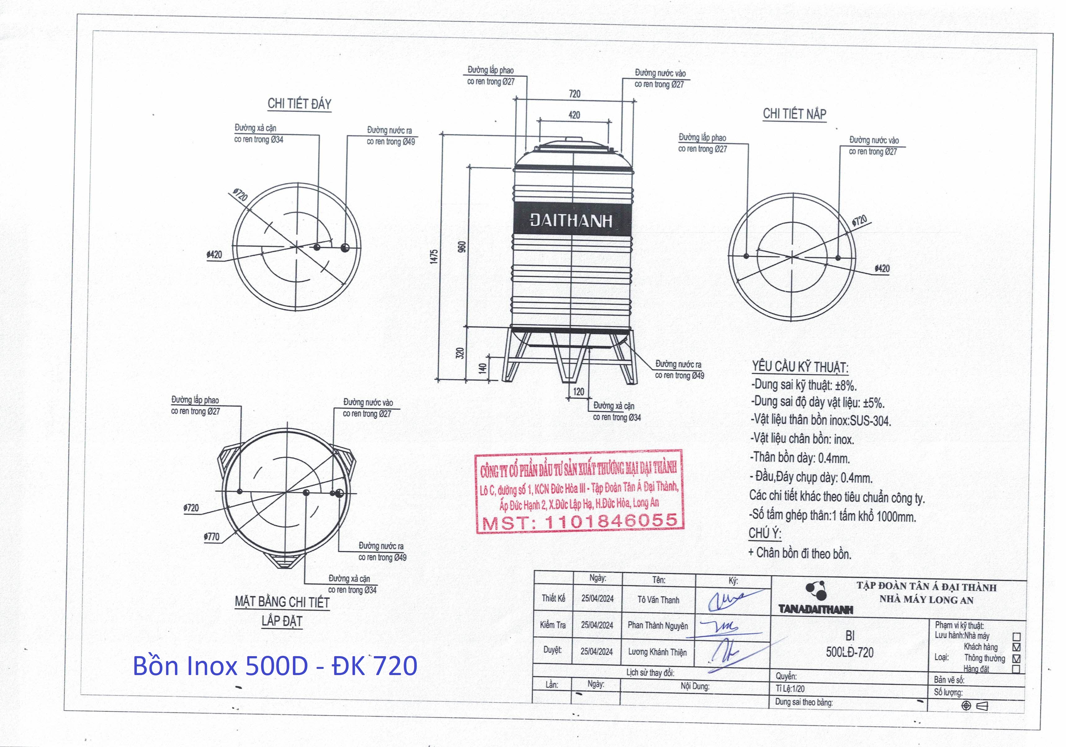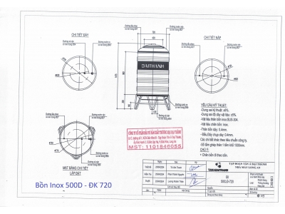 BỒN INOX ĐẠI THÀNH 500L ĐỨNG
