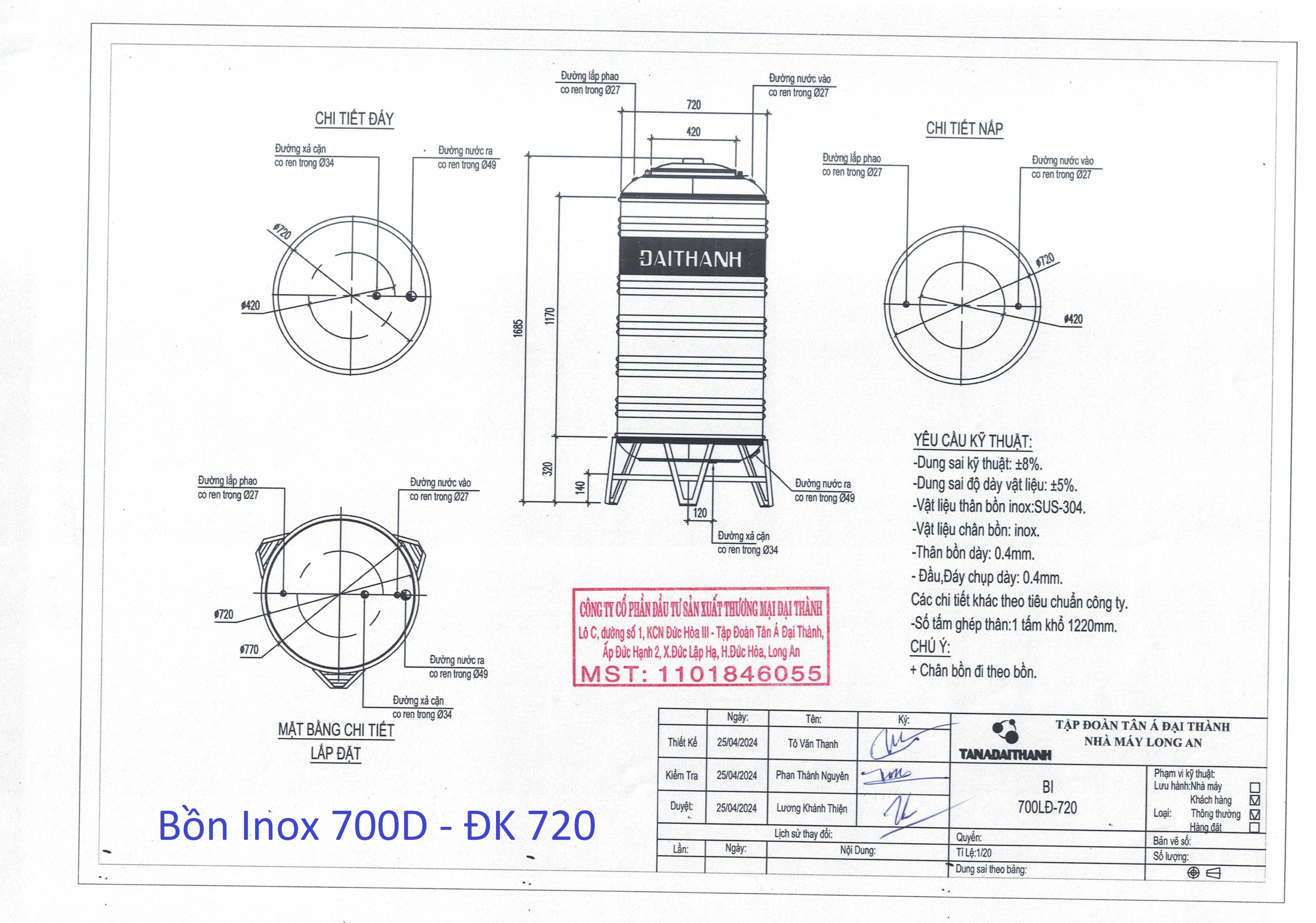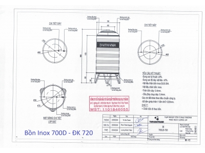 BỒN INOX ĐẠI THÀNH 700L ĐỨNG