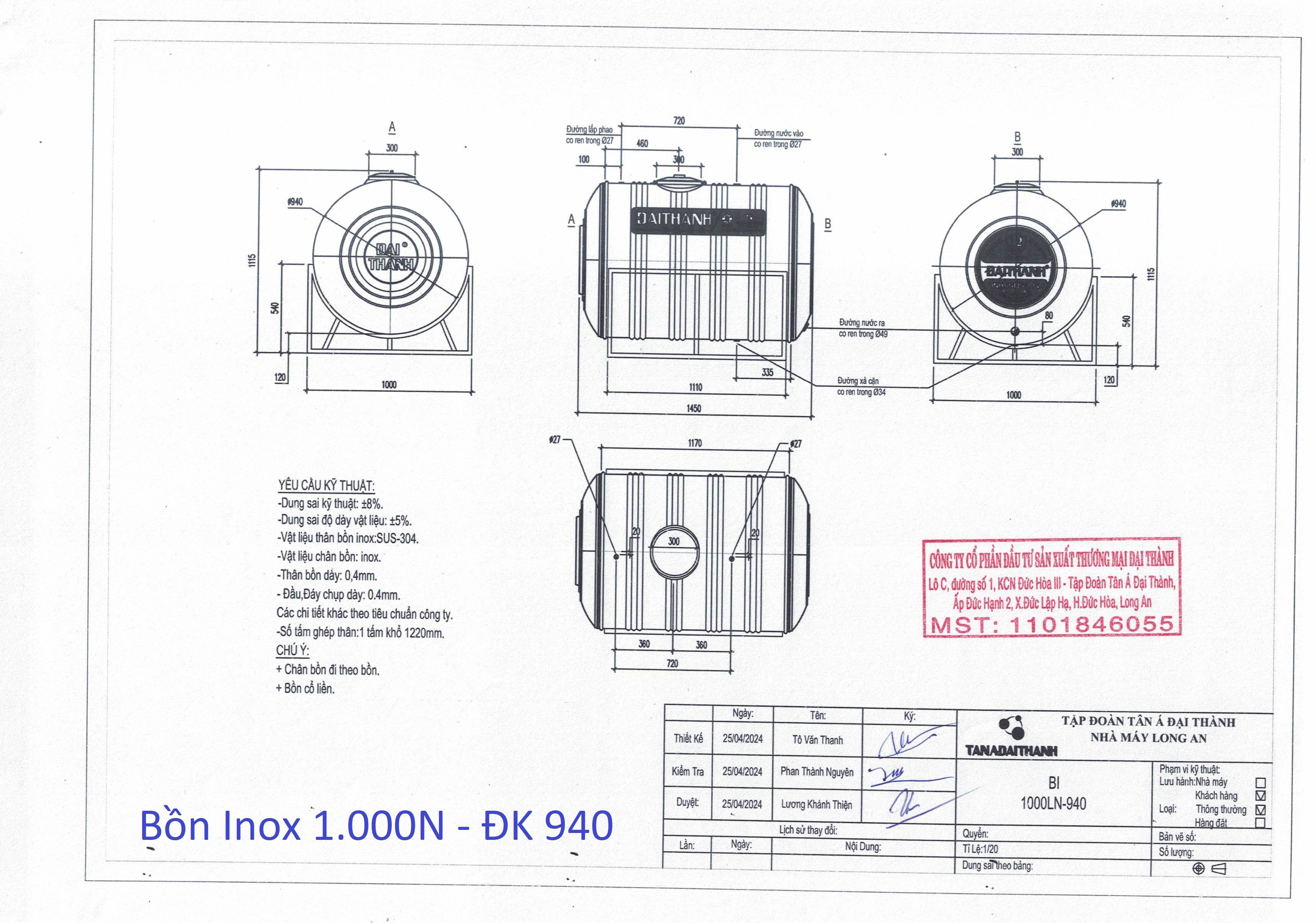 - Bồn nước Inox Đại Thành. Chất liệu: Thép không gỉ SUS 304. Bảo hành chính hãng: 12 năm