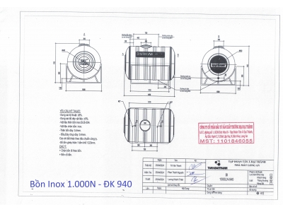 BỒN INOX ĐẠI THÀNH 1.000L NGANG