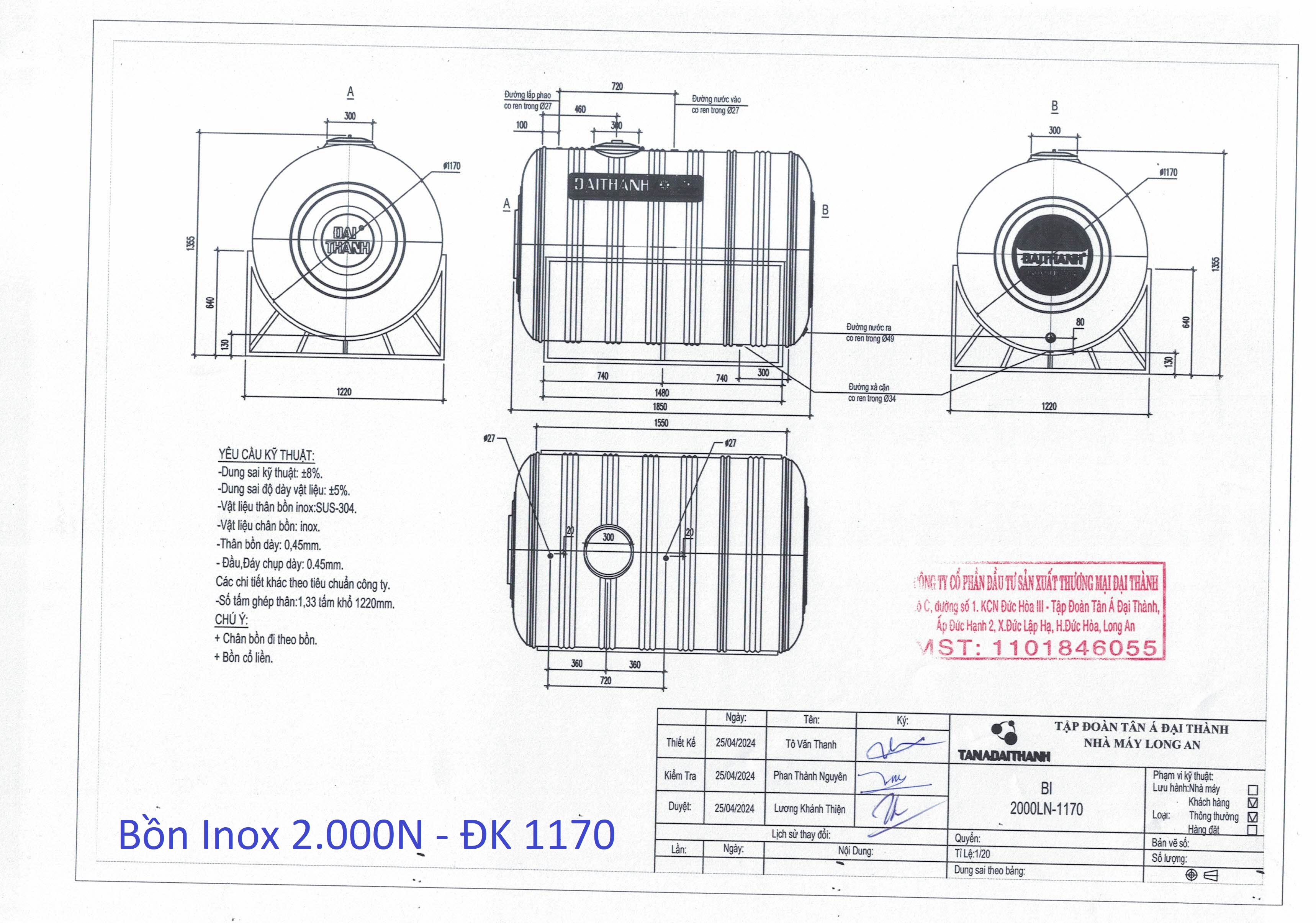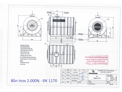 BỒN INOX ĐẠI THÀNH 2.000L NGANG