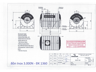 BỒN INOX ĐẠI THÀNH 3.000L NGANG