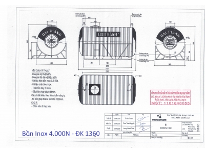 BỒN INOX ĐẠI THÀNH 4.000L NGANG