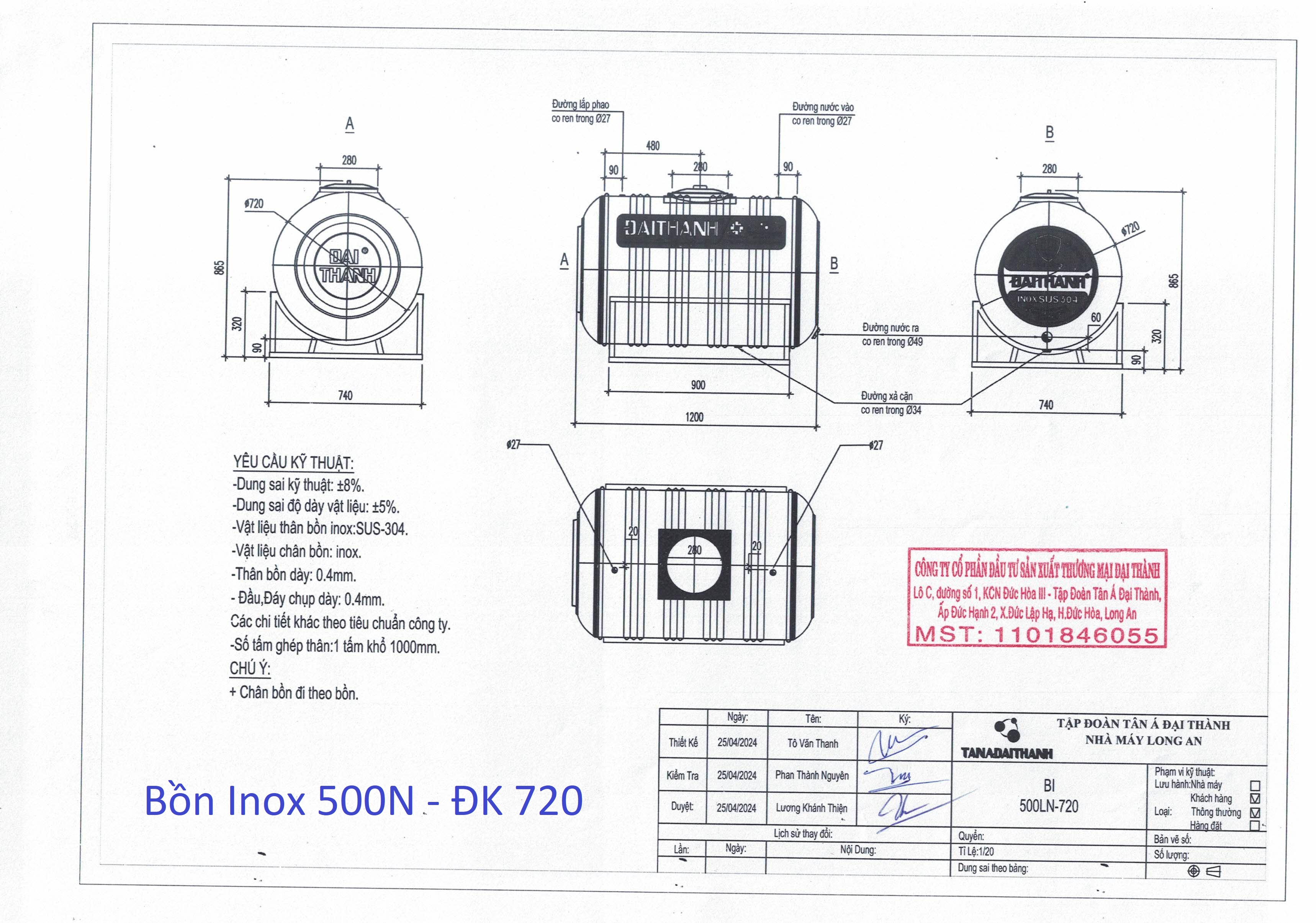 - Bồn nước Inox Đại Thành. Chất liệu: Thép không gỉ SUS 304. Bảo hành chính hãng: 12 năm