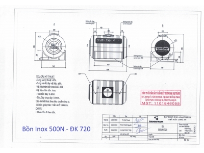 BỒN INOX ĐẠI THÀNH 500L NGANG