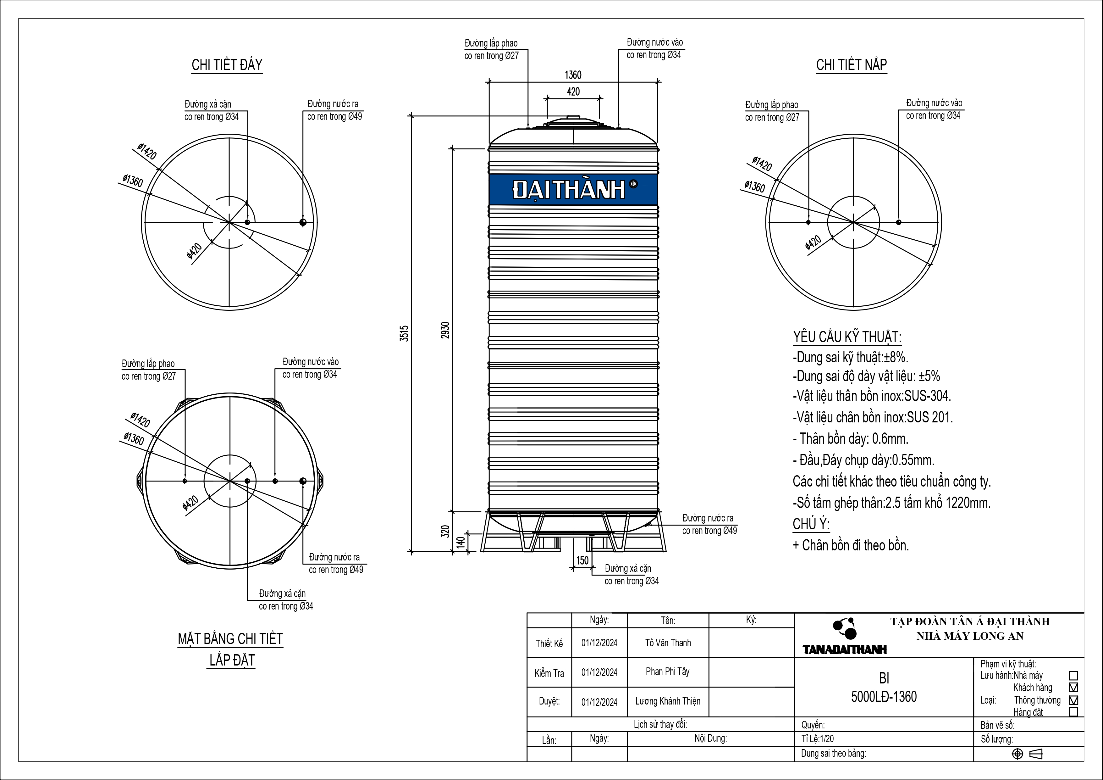 BỒN INOX ĐẠI THÀNH 5.000L ĐỨNG